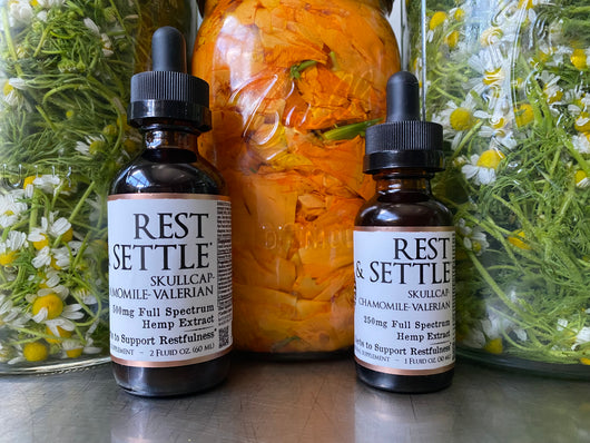 For anyone out there struggling with settling down, restless nights & falling asleep....Authentic's Rest & Settle liquid extract is for you! This extract is designed to provide some herbal support at bedtime with deep restorative benefits for the nervous system & body as a whole. We combined our Certified Organic & Biodynamic Full Spectrum Hemp Extract with 9 of the most premier herbs for sleepy-time support, nourishing the nerves & cultivating stress resilience: Skullcap, Chamomile, Hops, Blue Vervain, Hawthorne, Valerian, Milky Oat Tops & California Poppy.  Think of this blend as a gentle herbal ally to take nightly to help calm down & settle into rest.**